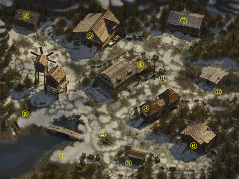 一开始蛮族营地并未在地图上标出,必须向独林镇上的人打听消息。有三个人知道蛮族营地的位置,分别是④哨音绞架Whistling Gallows旅店的矮人战士罗德·土诺菲斯特Roald Tunnelfist、⑤马厩的车队队长罗雷·加拉威Rawleigh Gallaway、⑥游侠兼制弓商人埃玛奇·鹰鸣Emmerich Hawk。询问他们中的任意一个,便可以知道蛮族营地的位置。
