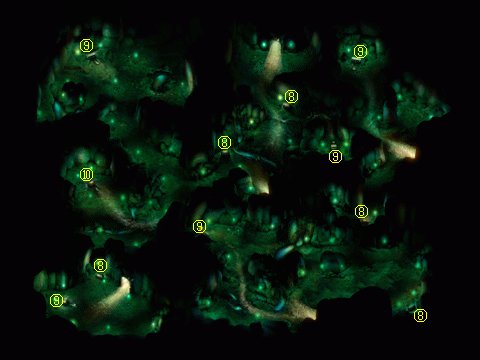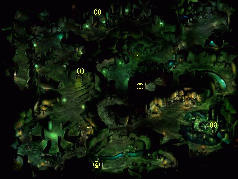 下一层是一座胡狼人Jackal的村庄,胡狼人是和狼人不同的种类,但是作战能力相似(还好不是和巨型狼人相似)。⑦处有一个没有敌意的老胡狼人瑞凯沙Rikasha,可以为你提供治疗。