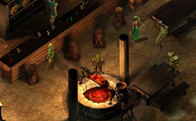没来得及继续质问半身人,他便溜进了他身后的小屋里①,随后五只鸟妖围了上来,这些怪物能使人生病,但不算太难对付。战斗可能还会招来附近的一群甲虫(酸)和翼龙(毒,伤害大持续时间久!),有趣的是不同种类的怪物之间会内讧,不过它们主要攻击的目标还是你,呵呵。所以还是在霍巴的小屋前先把鸟妖收拾干净,再去灭掉左侧的翼龙和右侧的甲虫。